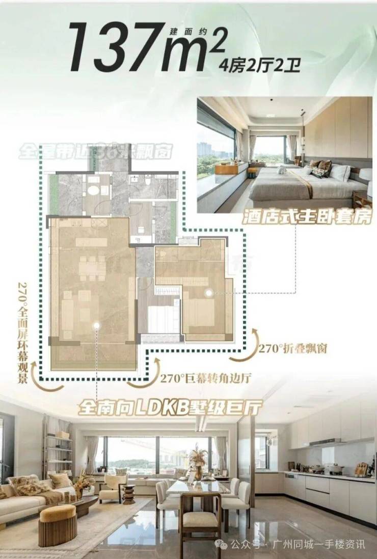 建面约137平户型为例,就拥有全南向墅级LDKB巨厅。