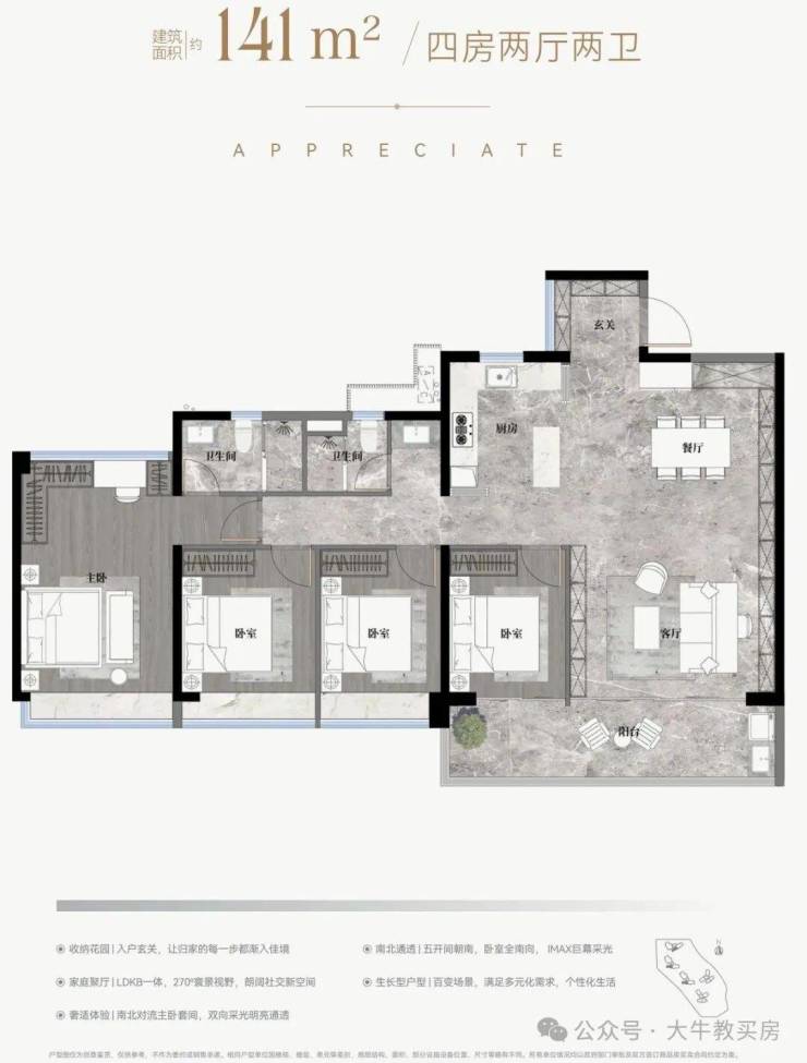 ✅净宽5.05m巨幕宽厅+净宽4m奢阔主卧