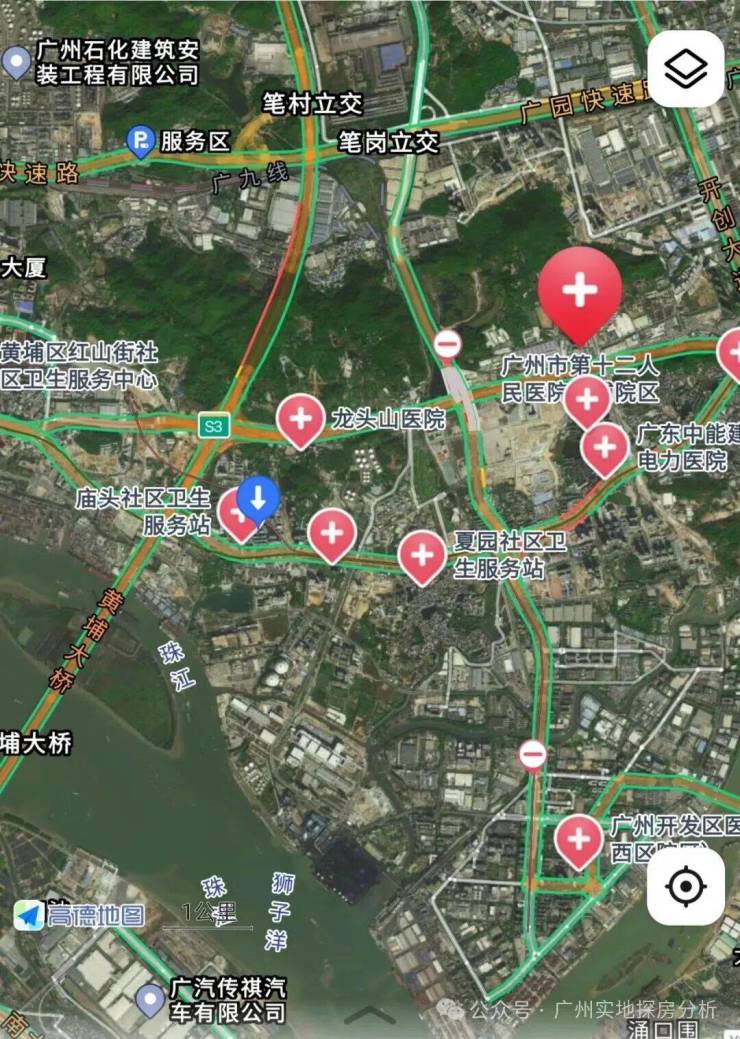 项目周边有广州开发区医院,中山大学附属第一人民医院,广州市第十二人民医院在建三甲基本都在5公里内。