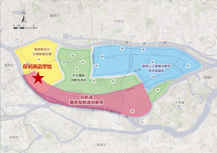 在《广州十四五》规划中,明确讲海珠定位为“城央宜居区”珠江高质量发展,在这个四方珠水环绕的海珠岛孕育着岭南文化,聚集高等学府,受高净值人士追捧。3月18日,海珠区政府重磅发布《海珠区后航道服务型制造创新带产业发展策划》中,海珠立足数字经济和都市工业“双核驱动”发展战略,着力打造“一心两翼四组团”的全新布局,推动海珠后航道沿线发展能级。