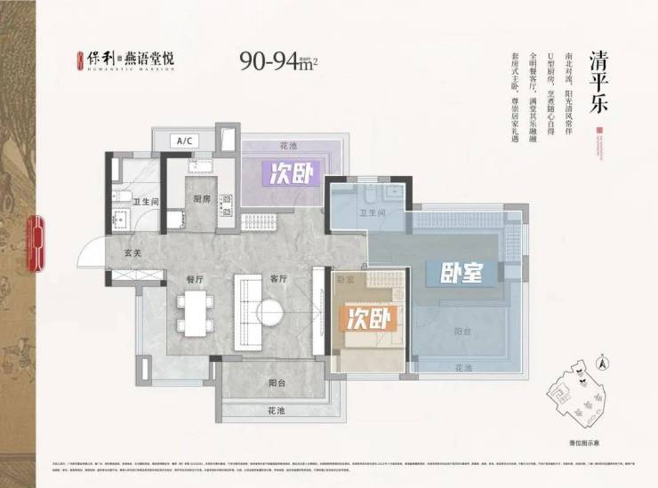 清平乐90-94平,为了做南北对流,牺牲了许多采光,有相互被遮挡。而且A1栋给了90平,因为西向北是A2栋,遮挡比较严重。