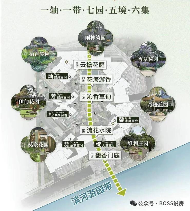 园区内设有六大社区花园及中式园林景观,还规划有儿童乐园、老年活动中心、环形跑道、社区会客厅等全龄化社区设施