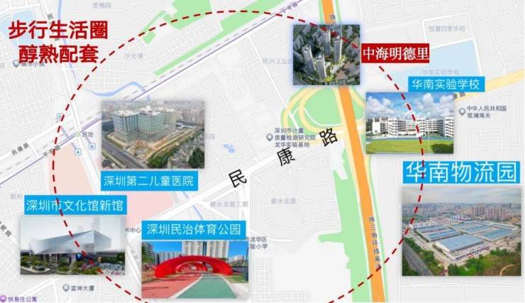 2)沿民康路两侧已陆续聚集了包括深圳市文化馆新馆、深圳第二儿童医院、已开园的深圳民治体育公园等市政配套。