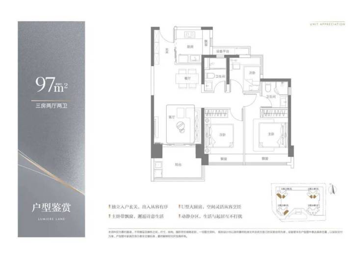 【97平米3房2厅2卫】动静分区,3开间朝南,核心园林景观,高区无敌视野;