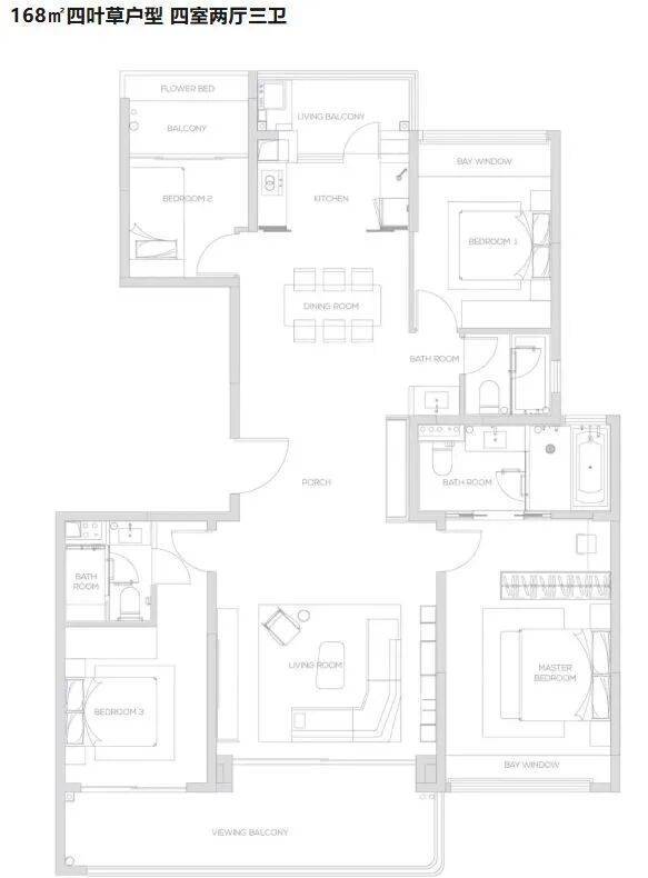 168㎡四叶草户型(四室两厅三卫)
