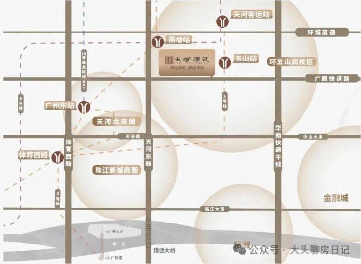◎ 驾驭时间 接轨世界速度 - 3纵:东莞庄路、华南快速干线、燕岭路- 2横:广州环城高速、广园快速路- 3地铁:地铁3号线、6号线及1号线- 1心:中心枢纽广州东站