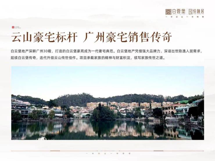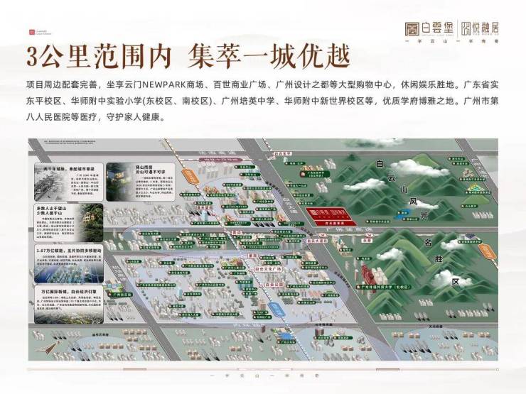 位于白云山麓半山之上,白云堡全新三期豪宅项目雄峙于广州正脉之上,稀缺的0.8容积率设计,呈现出30年豪宅标杆的传奇荣耀。项目拥有私密220亩山体公园,与白云山紧密相连,带来天然的大氧吧体验,空气负离子浓度优势超越市区5.4倍。