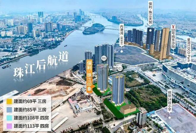 【保利珠江印象】是央企保利开发的项目,保利深耕广州 32 年,开发超 100 个高质量项目,实力雄厚。项目为 2024 年保利 82 亿拿下的东沙地块中的部分地块,占地面积 1.56 万㎡,规划 2 栋 32 层住宅及 1 所幼儿园,在售 69-113㎡稀缺江景户型,以低价快销方式操盘,是核心豪宅区少有的小户型项目。