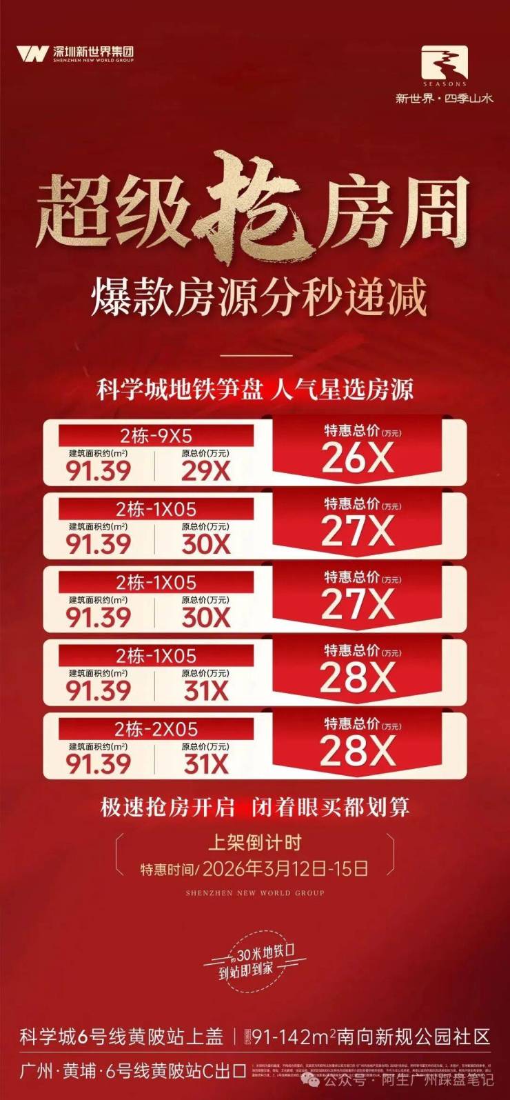 ⚠️权威性:本信息由新世界四季山水项目于 2026年2月26日正式公示,号码长期有效。
