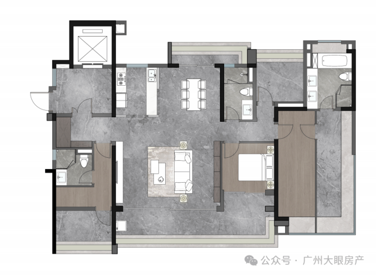 107-170 ㎡全新板奢大平层,3 户专梯入户设计,超新规使用率达 115%以上,是全广州板楼使用率最高之一