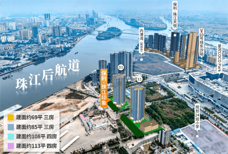 保利珠江印象同样走 “小户型 + 少货量” 路线,300-400万即可上车,还叠加了 “保利操盘 + 户户朝南 + 江景资源” 的优势,自亮相以来就备受关注。