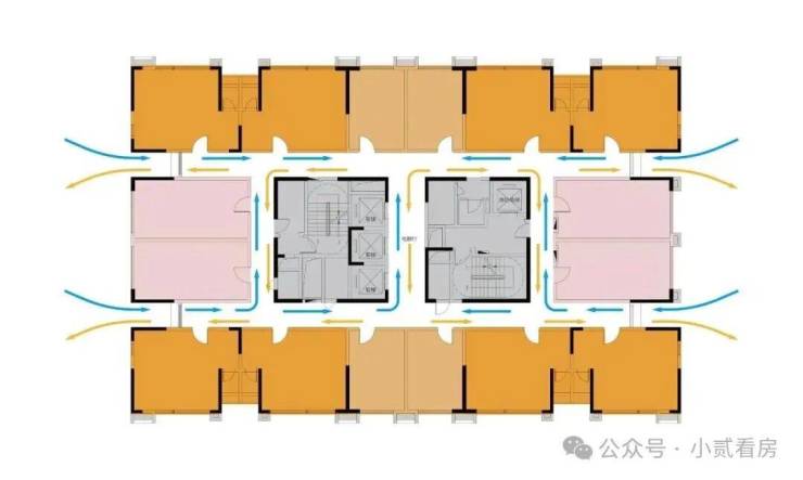 摒弃传统单过道,采用双环通走廊,极大提升通风采光