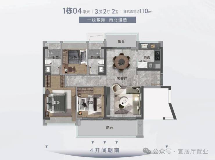 格局:南北对流、5.8 米宽景阳台、主卧套间、U 型厨房