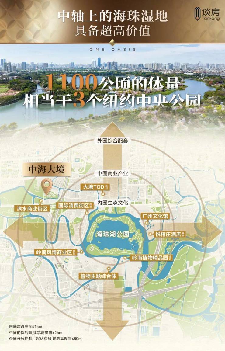 它的左手,是广州中轴的繁华脉络;右手,是11平方公里的国家湿地公园,万亩绿洲推窗即见。