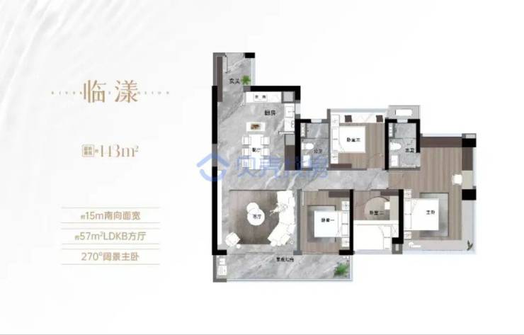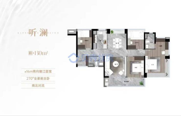 - 143/144㎡四房两卫:270°江景视野,大面宽阳台