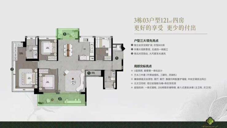 同样是南北对流的四房户型,做到了4.5开间朝南。