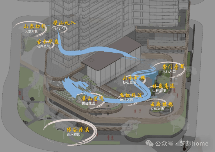 同时,空中花园又巧妙地包裹了泳池,并结合4层架空层,通过抬高设计,雕琢出高定花园会所。