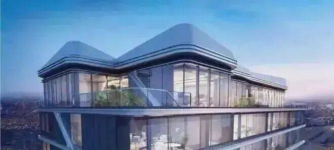 法拉利游艇弧形线条为灵感、玻璃幕墙配上“流线型”铝扣板及造型结构装饰。