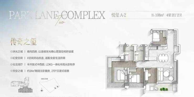 • 二期升级版:108-124㎡全南向四房,新增U型飘窗、灵动空间改造,总价600万起。