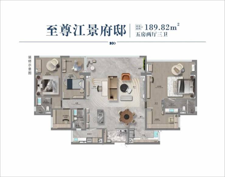 •大宅格局:五房配置,家庭成员间保持独立和谐,适合多代同堂的家庭生活需求。