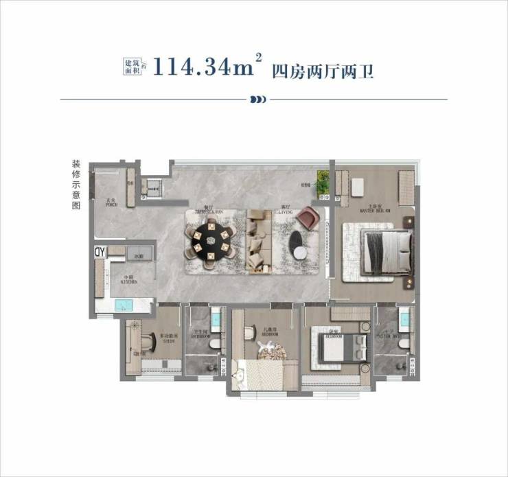 114.34㎡ 四房两厅两卫
