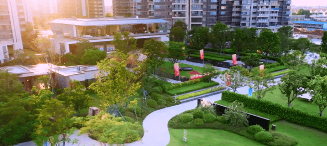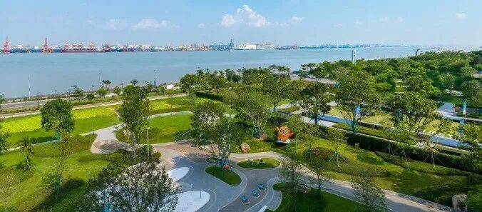 保利领秀海自带的约12万㎡滨海园林,已经实景呈现,业主下楼,就是一环七景的海岛园林,入口广场、林间小径、景观廊架、绿荫草地,一路铺展开来。