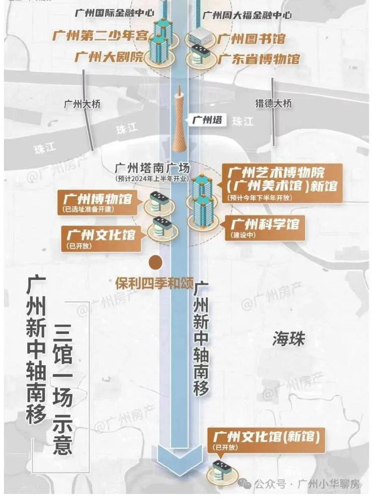 对标天河CBD,新“四馆一场”坐落海珠,广州科学馆,广州美术馆、广州文化馆,广州博物馆新馆、广州塔南广场,其中广州塔南广场会被打造成海珠区最高端的商业综合体,聚集发展美食旅游、时尚娱乐、国际展贸等消费新业态。