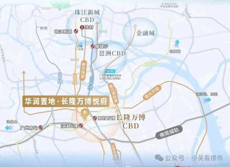 项目一期距离地铁3/7号线汉溪长隆站约500米左右,步行约7分钟,距离地铁7/18号线南村万博站约1.2公里,二期距离地铁汉溪长隆站会更近一点,这三条地铁线,都是比较牛的线路,例如7号线可到南站、大学城、科学城,3号线可直达体育西,18号线更是国内最快时速地铁,可直达琶洲、珠城等地。