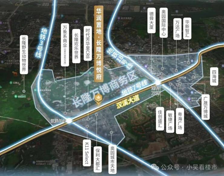 万博CBD的商业都非常齐全,光项目周边就有14家商业体,其中K11、万达、四海城、粤海广场、万达广场等等都在这里,项目自身还配建万象系商业体,今年4月也是完成了奠基!这将是长隆万博进阶为超级文商旅中心的重要一步!万象系商业,是国内TOP1级别的高端商业IP,每一座万象系商业,都是当地的商业地标,整个万博片区的商业非常成熟。