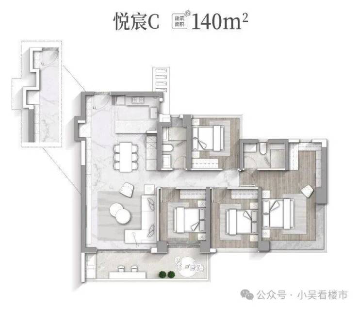 140平主要在一期9-10栋和二期的5栋,也是一期更有性价比,总价在750-840万左右,具体要看楼层和朝向。