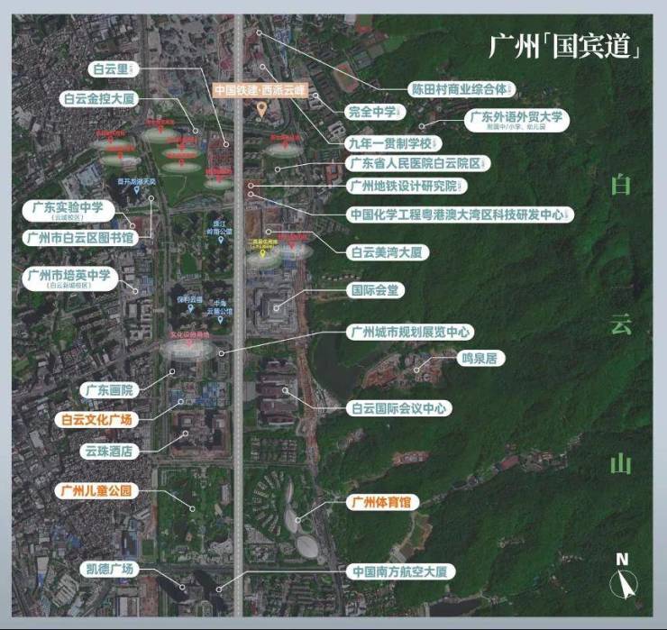 作为白云当之无愧的发展头排,白云新城北部承接磅礴能量,享受高度集中的资源倾斜,国际会堂、广州城市规划展览中心、云珠酒店、鸣泉居等城市封面地标和国宾级物业相继落成,一众高量级配套集聚于此,未来将成为广州版“国宾道”,承担起白云新城对外“新名片”。