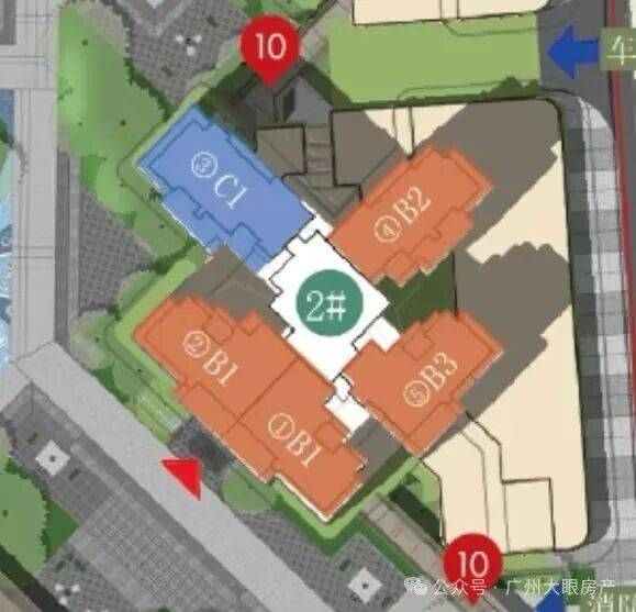 1栋最靠近黄埔东路,是受黄埔东路影响最大的楼栋,优势是,两梯五户设计,非超高层,以小面积为主。