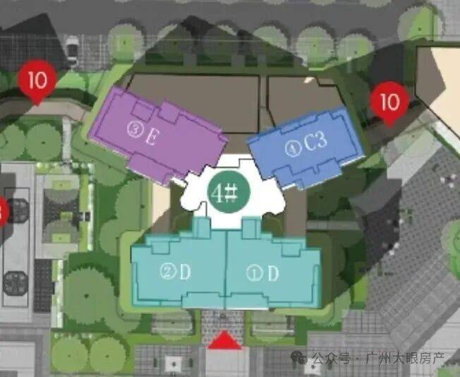 4栋是3梯4户,56层高,户型有C3-D-D-E