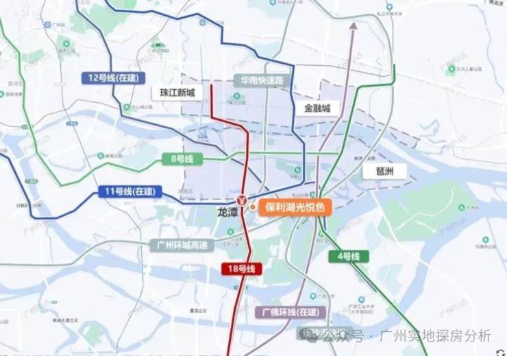 项目距离地铁18号线和在建11号线交汇的龙潭站约600米,从龙潭站出发,到珠江新城、琶洲金融城很近。