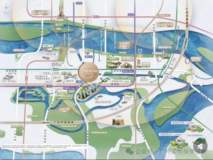 每栋洋房架空层设有泳池/休闲区/儿童娱乐区。西侧紧邻广州海珠湿地公园,南侧与石榴岗河相邻,拥有稀缺的滨水资源和良好的生态环境。3公里范围内还有海珠湖公园、瀛洲生态园、广州国际生物岛,四大公园串联一体,是净化环境的天然氧吧。