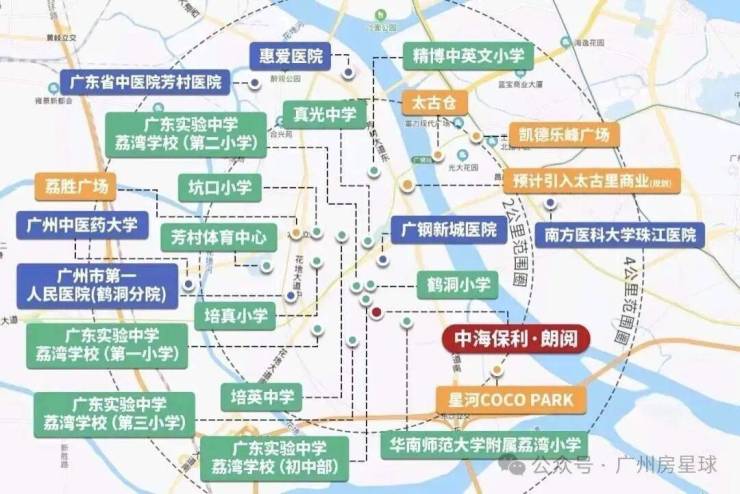 4公里内5所三甲医院,崇文二路侧广钢医院正升级改造为拥有1200张床位的甲级医院;临近广州国际医药港,坐拥千亿级别大健康产业集聚平台。