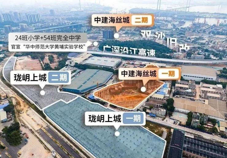 项目挨着黄埔大桥,位于华中师范大学黄埔实验学校、黄埔区中医医院以南。
