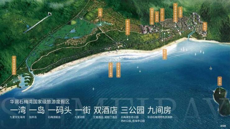 在石梅湾开发的前十年,华润置地先后投入数十亿资金,建设包括道路、桥梁、码头等公共交通系统,以及管线、污水处理、公共建筑、石梅湖公园等公共设施配套,勾勒出石梅湾作为海岛旅游度假的骨骼和底盘。