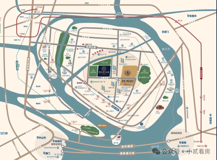 星河·湾区壹号,位于万达、金洲两大商圈交汇处,尽享双商圈繁华。