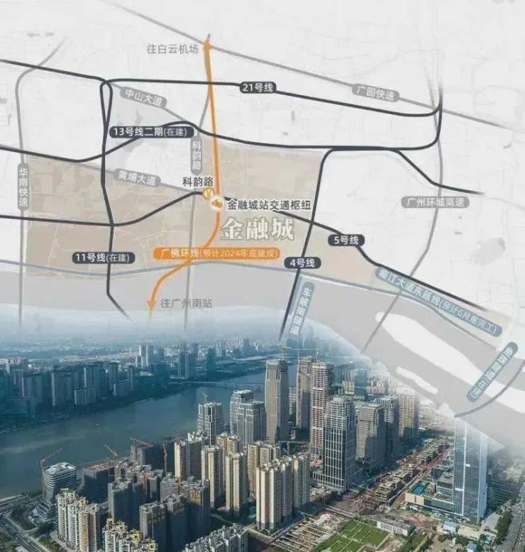 项目周边的中山大道、黄埔大道、临江大道与科韵路、车陂路相互交织,共同勾勒出壮阔交通版图,将金融城与珠江新城紧密相连。车陂南隧道的开通,更是将金融城起步区至琶洲的通行时间缩短至约5分钟。