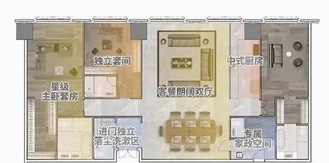 建面约654㎡户型,约150㎡L型LDK超大公区,链接餐厅、露台,展现世家尊荣的气度,全南向IMAX环幕视野,无遮挡直面珠水,把江岸纳为私藏。