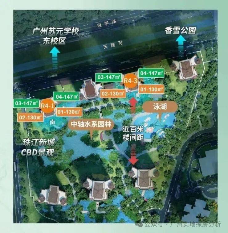 3、教育资源配建,广州二中教育集团管理的苏元学校(东校区),涵盖幼儿园至高中全龄段教育,业主子女可对口直升。该校2024年首届高考特控率达92%,位列黄埔区第一,解决高知家庭的教育焦虑。