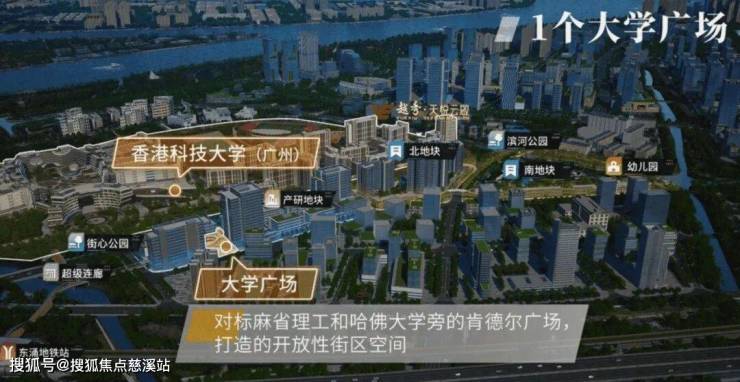 北地块靠近港科大(广州),小区呈一字型排布,楼栋排布错位,无高层建筑遮挡,业主北边可欣赏港科大(广州)校园景观,南边能俯瞰小区园林。