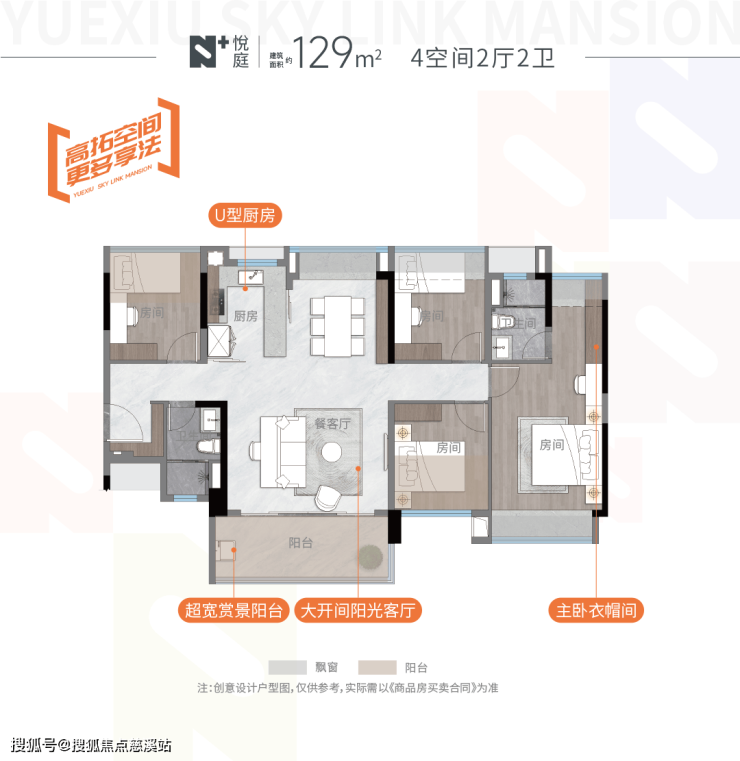 建面129㎡户型使用率约 98%