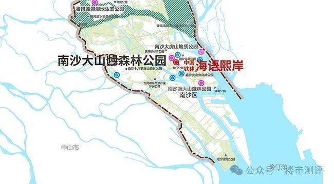 中国铁建·海语熙岸组团,紧邻凤凰湖,背靠大山乸森林公园,生态湖居大境呼应着南沙中芯贵重的土地,在向湖而生的灵感中构筑与湖共居的空间场域。且临近城市主干道,交通便捷。(不过存在高速噪音影响)