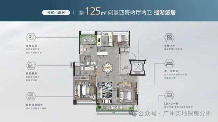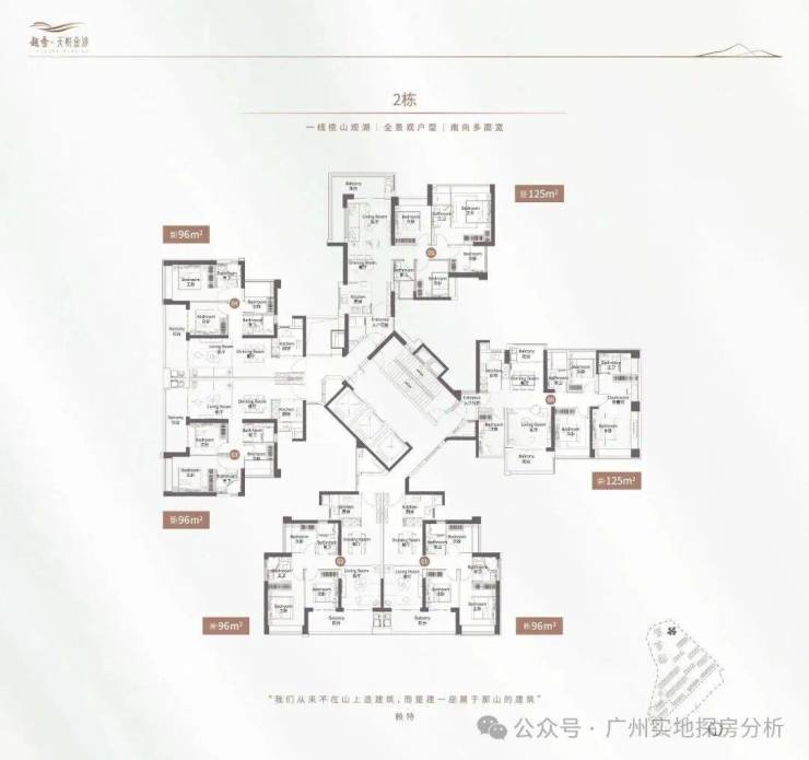 小高层95㎡/125㎡三四房、超高层96㎡三房、125㎡/141㎡四房、底叠150-200㎡三四房。