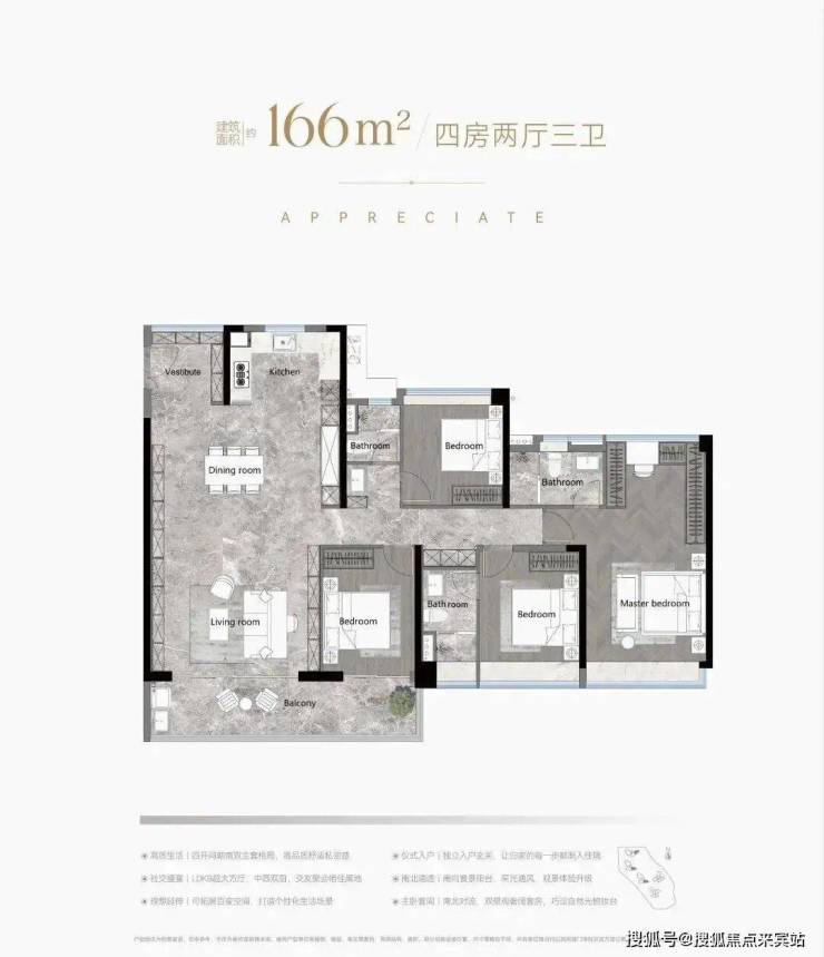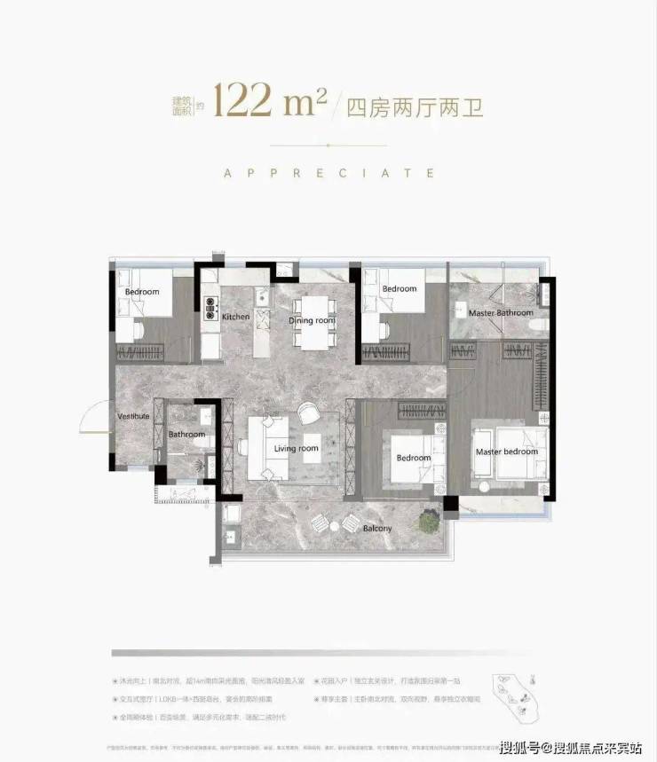 产品革新:126%得房率,南向四开间设计