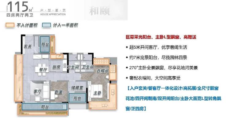115方,多房朝南厅出大阳台空间感满满,下班放空的好地方,同时空气对流和采光不忧愁,800mL型飘窗额外拓宽功能空间,收纳力拉满,灵活多功能空间,自由组合,满足收纳达人的整理需求