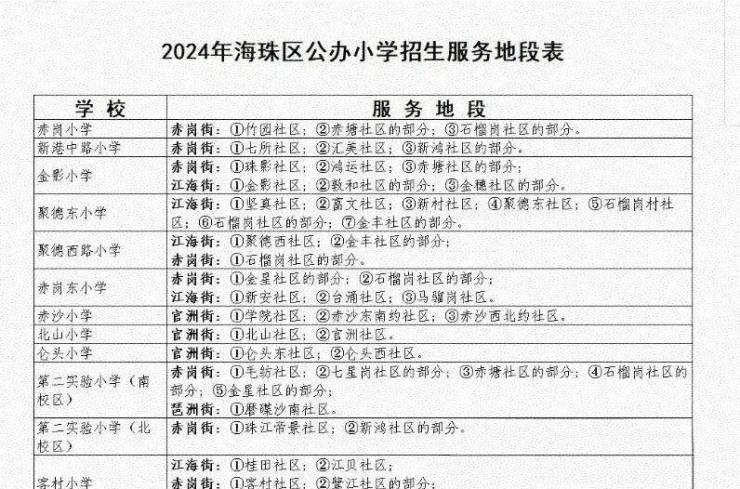 项目按预售证登记的街道社区来看,大概率上的是赤岗东小学,不过其教育质量相对一般。附近还有赤沙小学、海珠小学、海珠中学(市一级)、聚德中学等学校。2024年海珠区公办小学招生服务地段表中,众多小学的服务地段涵盖了周边社区,还有项目西侧规划建设一所18班的中学,未来有望解决全龄段教育问题。