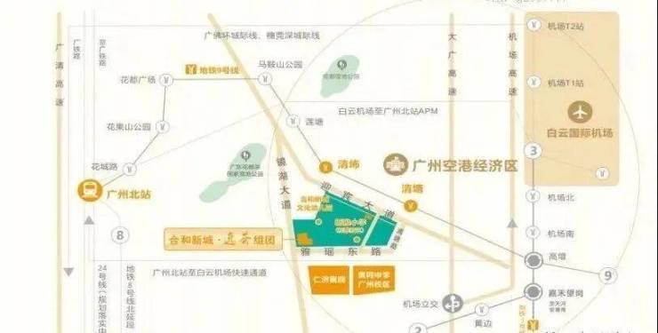 4、交通方式:机场高速→花都北站出口→迎宾大道→合和新城;